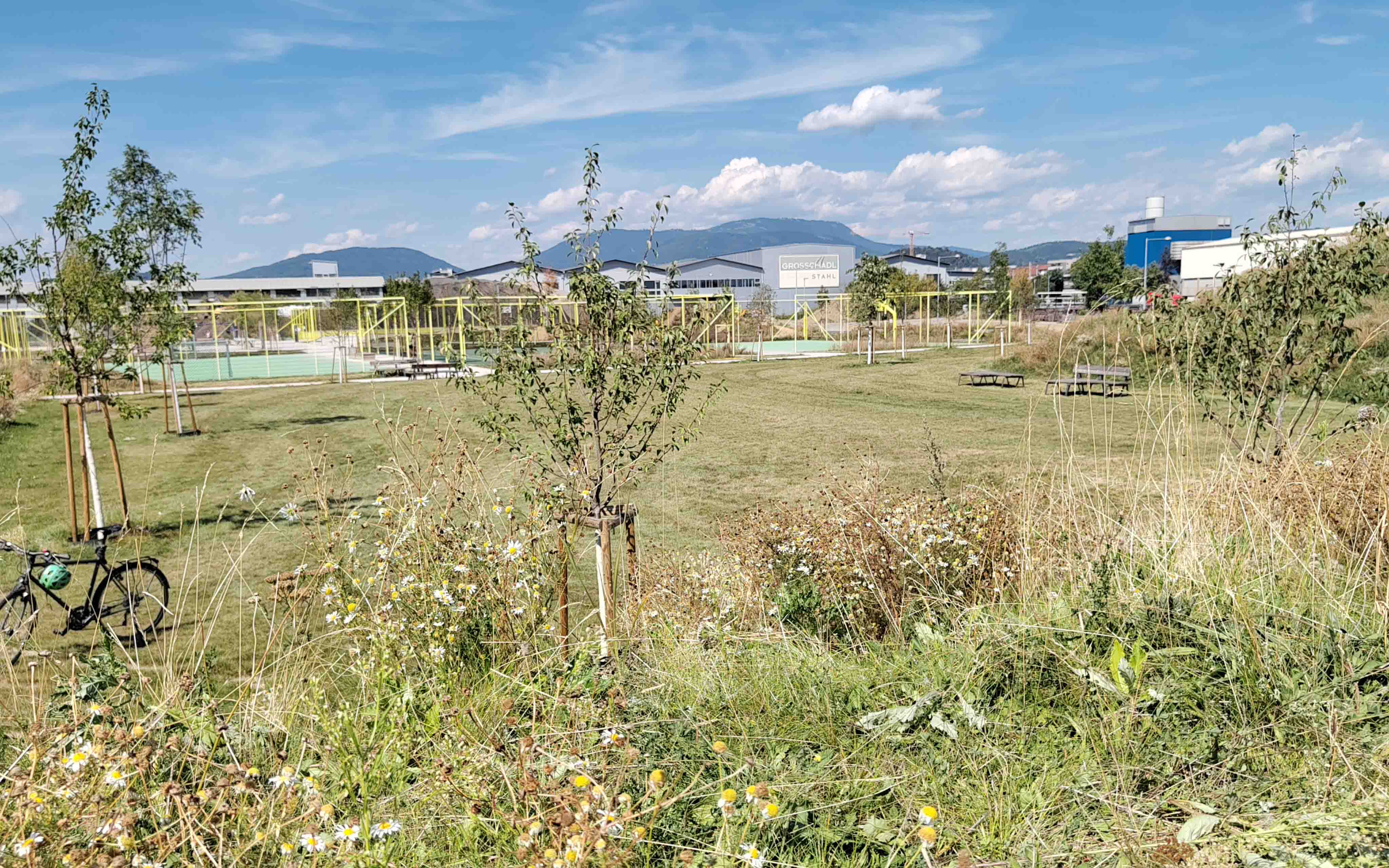 Der Bezirkssportpark in Reininghaus ist eröffnet und verfügt über Flächen, die sowohl von der AHS als auch allgemein genutzt werden können. Von Sportflächen für Beachvolleyball, Basketball, Tennis, Tischtennis, Handball über Skaterbereich als programmierte Aktivflächen bis hin zu nutzungsoffenen Flächen bietet der Park ein breites Spektrum für unterschiedlichste Nutzer*innengruppen.