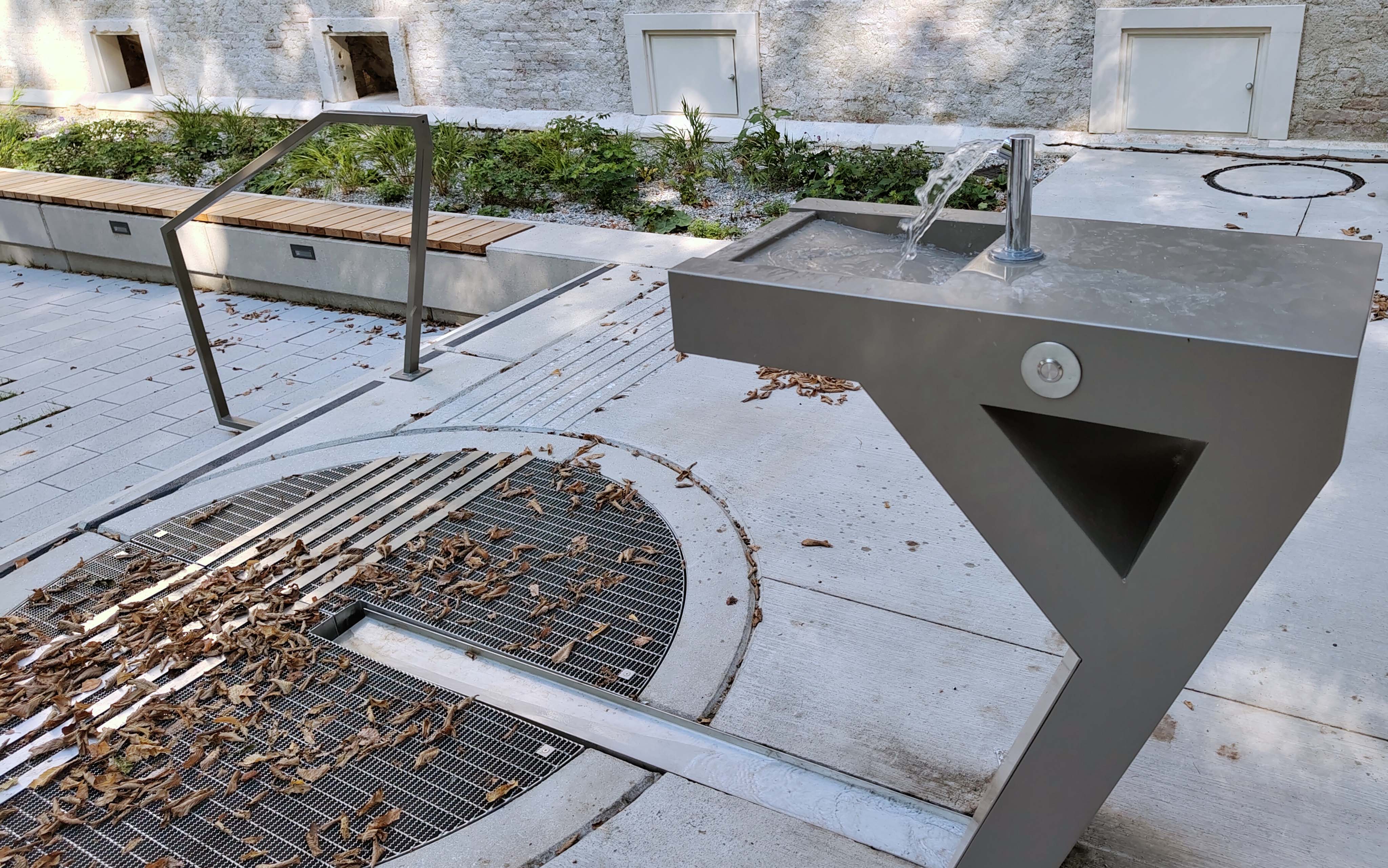Durch die Umgestaltung der Fußgängerzone entsteht am Schulstandort Franklinstraße ein abwechslungsreicher und einladender Freiraum. Als „Coole Straße Plus“- Projekt wurde größter Wert auf Versickerung/Verdunstung, Beschattung und Kühlung in Form von unterschiedlichen Wasserelementen gelegt.